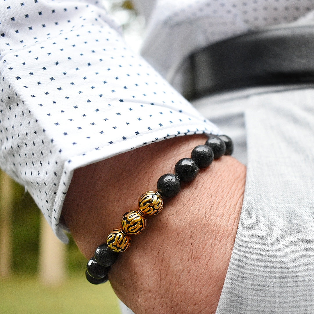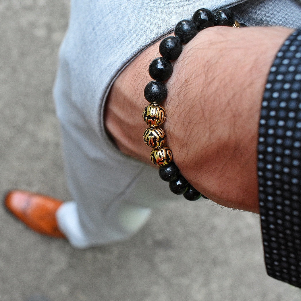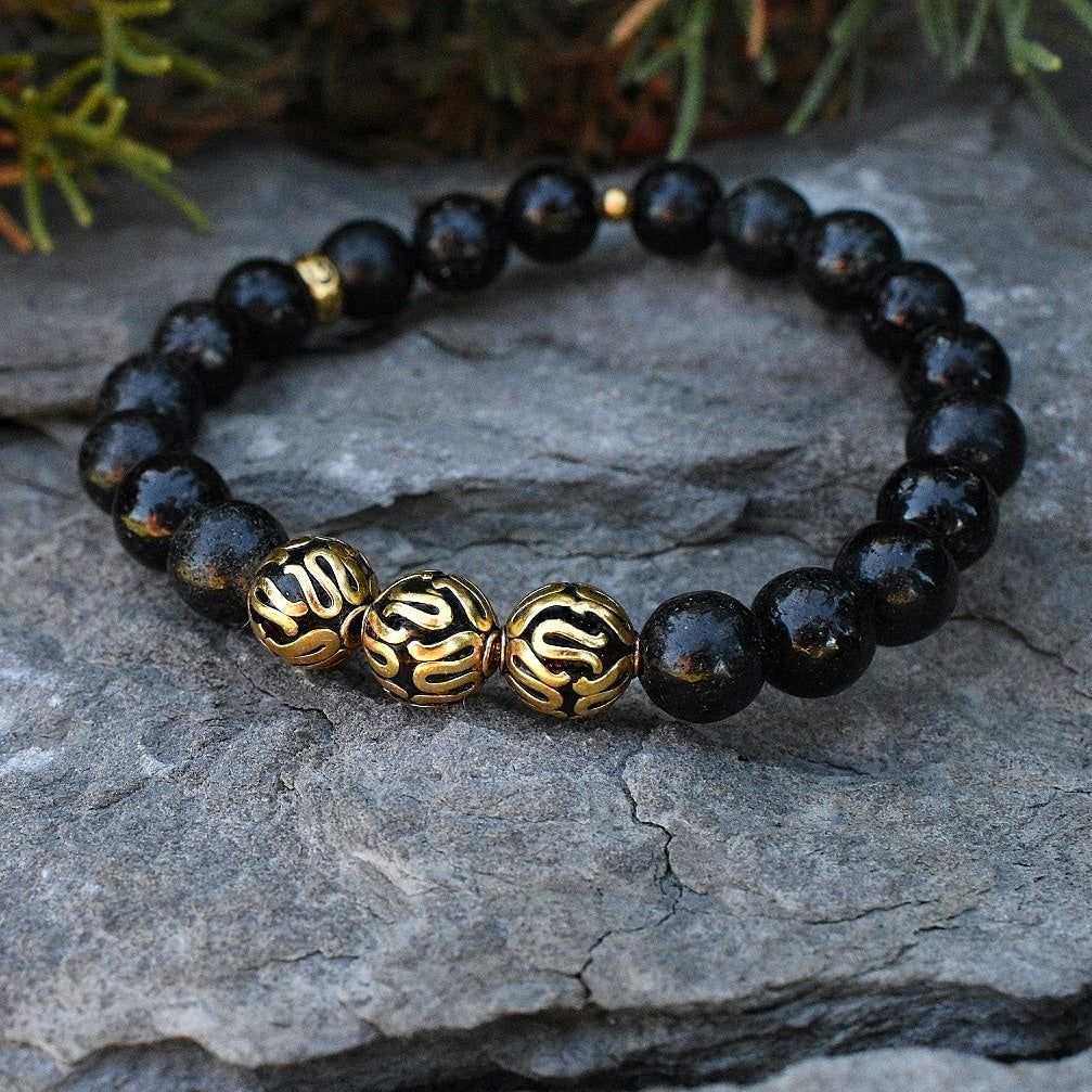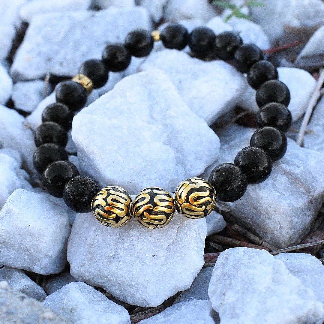 Our Gold Executive Biotite bracelet is completely handmade with natural 8mm Biotite gemstones. This piece is centered around the 3 premium 24k gold vermeil balls up front. Designed with luxury in mind, each handmade with pure 925 sterling silver and then layered with 24k gold. Our signature Gemvius 24k gold vermeil spacer is added near the back as a mark of where the piece was created.